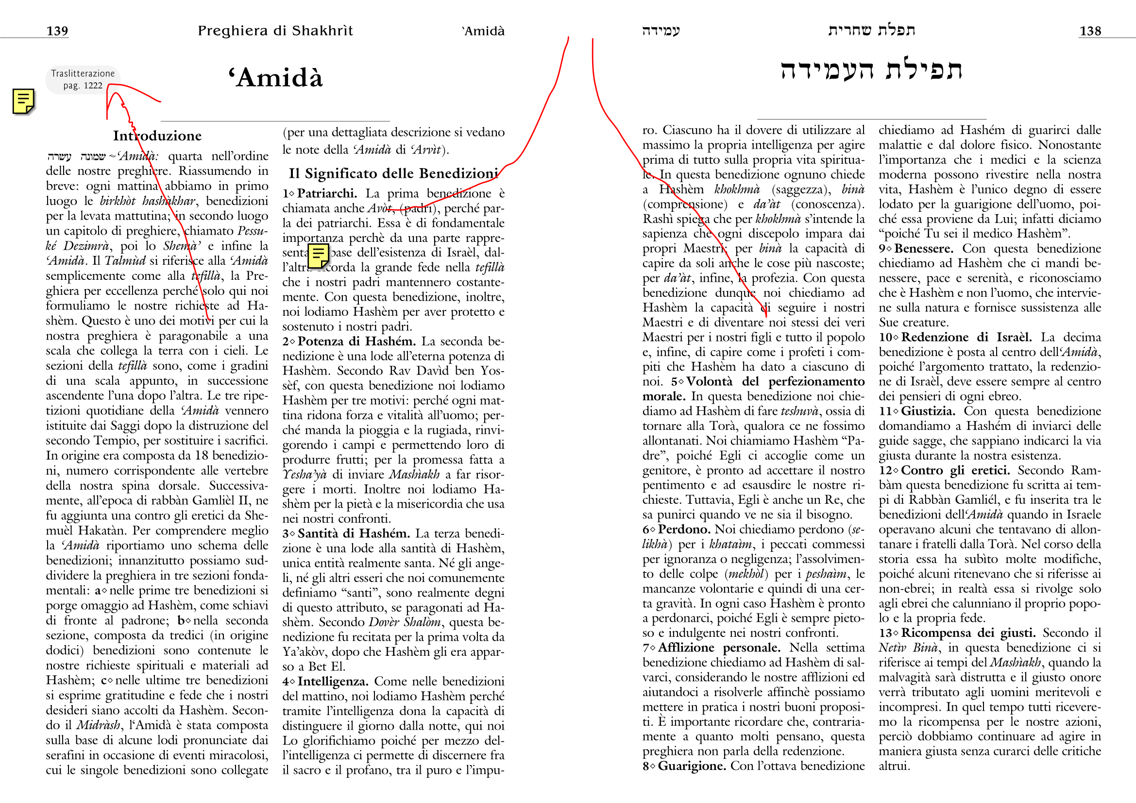 - Tutte le preghiere sono tradotte e commentate con l’aggiunta di molte note (ad esempio nella ‘Amida sono state inserite quattro pagine di commenti).